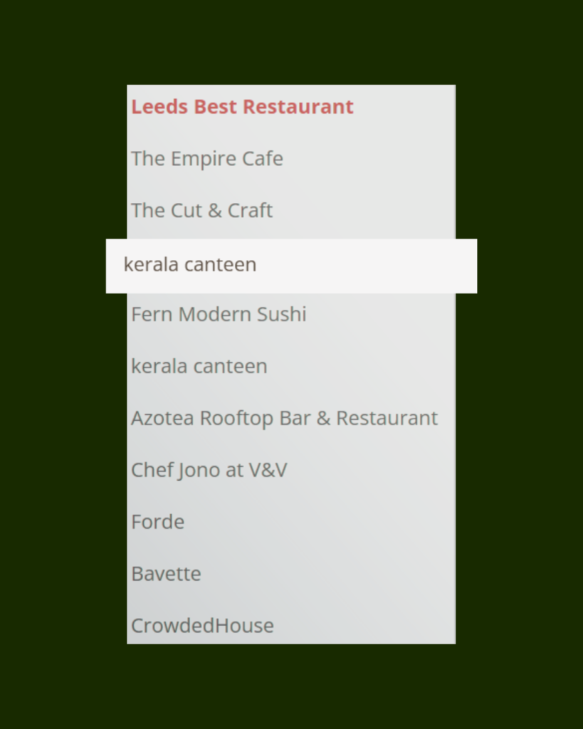 The Oliver Awards celebrate the very best restaurants, chefs, and hospitality venues across Leeds. To be listed among such respected names is an honour and a proud milestone for Kerala Canteen.